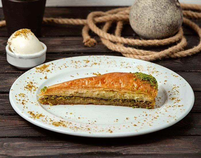Oldukça hafif ve lezzetli bu tatlı Gazi Antep’in eşsiz fıstıkları ile hazırlanıyor;  hamuru elle açılıyor ve üretiminde doğal şeker kulanılıyor. Aromasıyla damağınızda unutulmaz bir tat bırakan bu tatlıyı ister porsiyon, ister tepsi olarak sipariş edebilirsiniz.