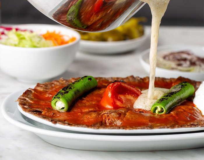 Katkısız kepek unundan hazırladığımız kıtır pidemizin üzerine, dana ve kuzu etinden hazırlanmış enfes yaprak et dönerimizi seriyor, üzerine günlük hazırladığımız iskender sosu gezdiriyor, ve özel tuzlu çiftlik tereyağı ekleyerek yanında 'Tava Yoğurdu' ile servis ediyoruz.